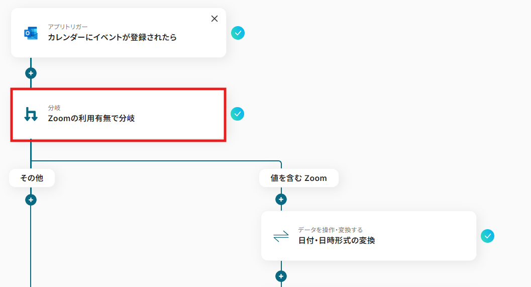 1) フローに戻り、「分岐 Zoomの利用有無で分岐」のアイコンをクリックします。