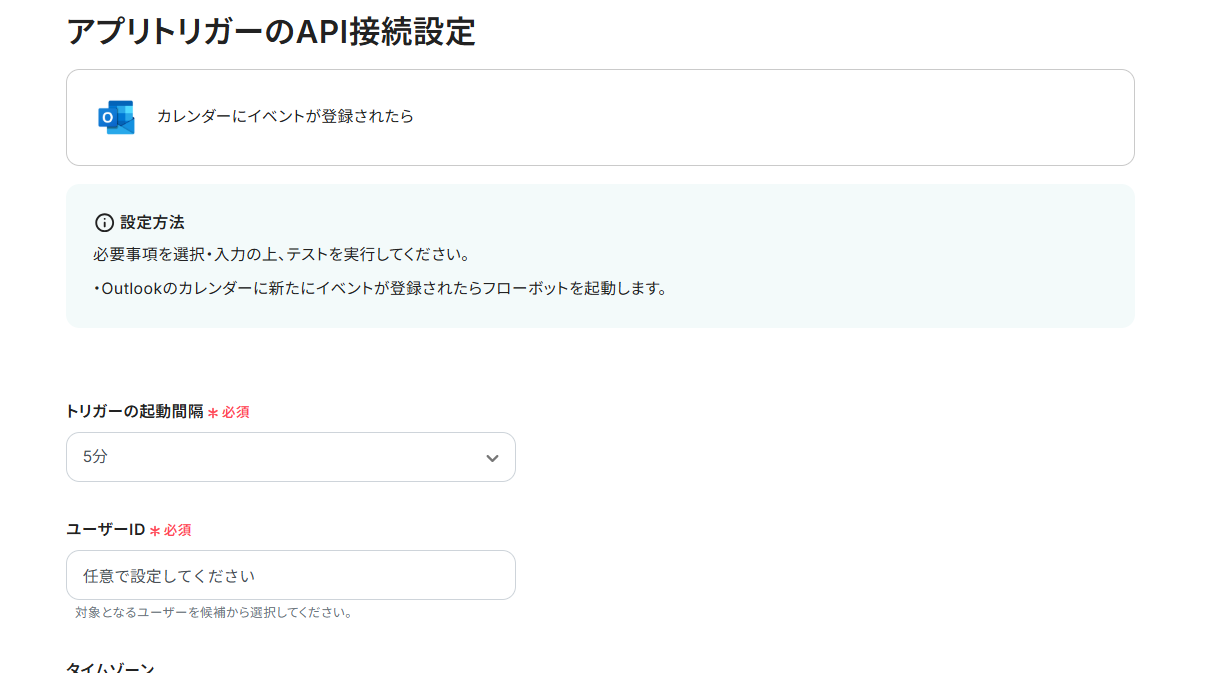 まずは「アプリトリガー カレンダーにイベントが登録されたら」をクリックしてみましょう!