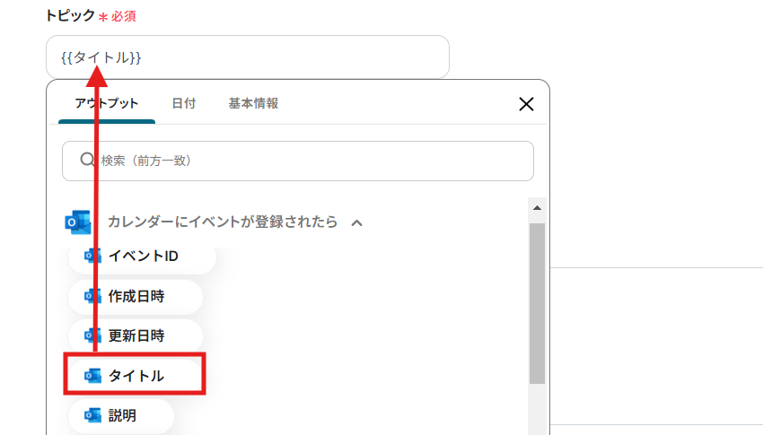 トピックの入力にはアウトプット情報を活用して入力できます。