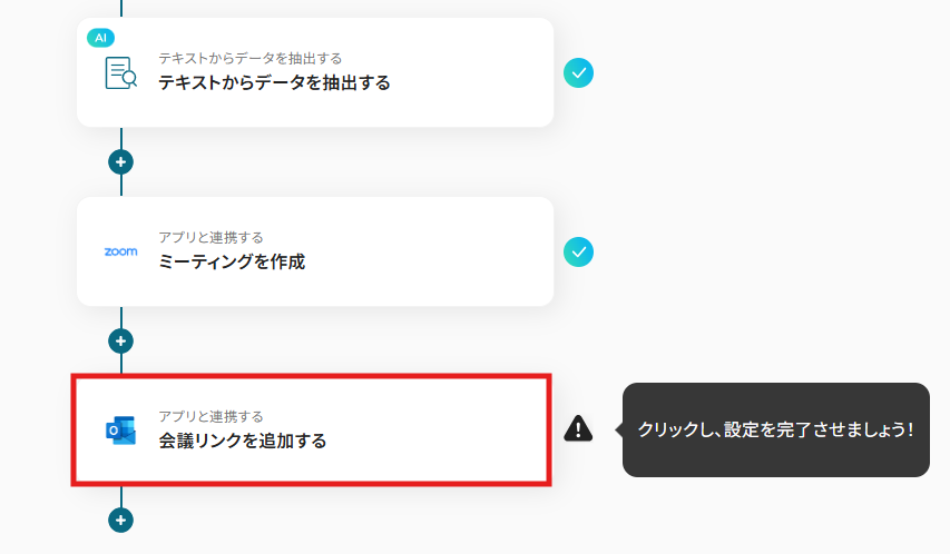 1) フローに戻り、「アプリと連携する 会議リンクを追加する」のアイコンをクリックします。