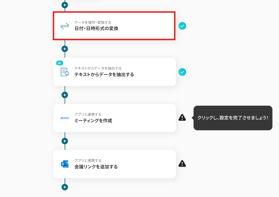 1) フローに戻り、「日付・日時形式の変換」のアイコンをクリックします。