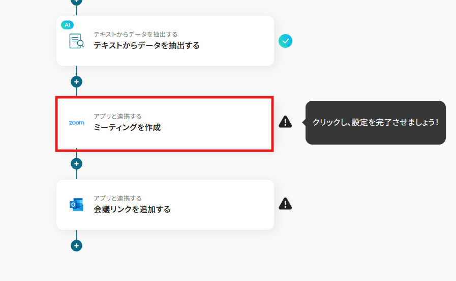 1) フローに戻り、「アプリと連携する ミーティングを作成」のアイコンをクリックします。