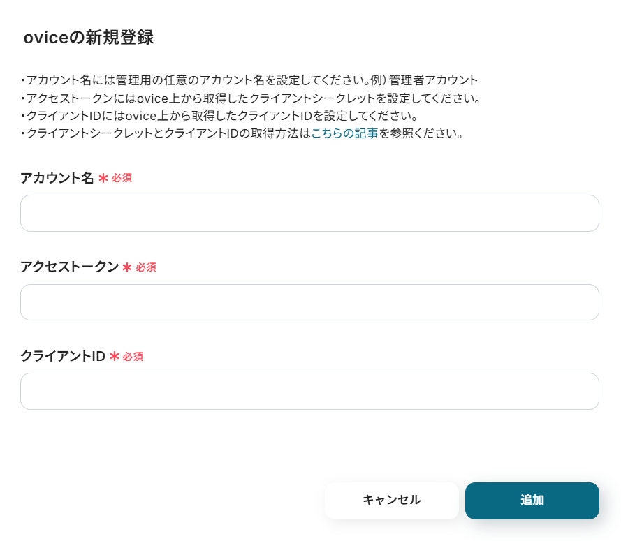 oviceと連携するアカウント情報はプルダウンから選択します。