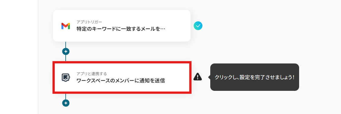アクションには「ワークスペースのメンバーに通知を送信」を選びましょう。