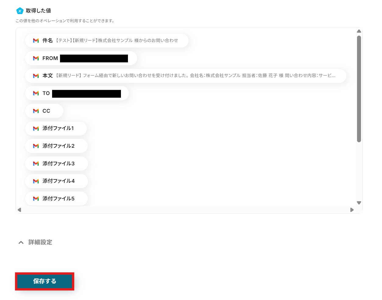 テストが成功したら、「保存する」をクリックするのを忘れないようにしましょう!