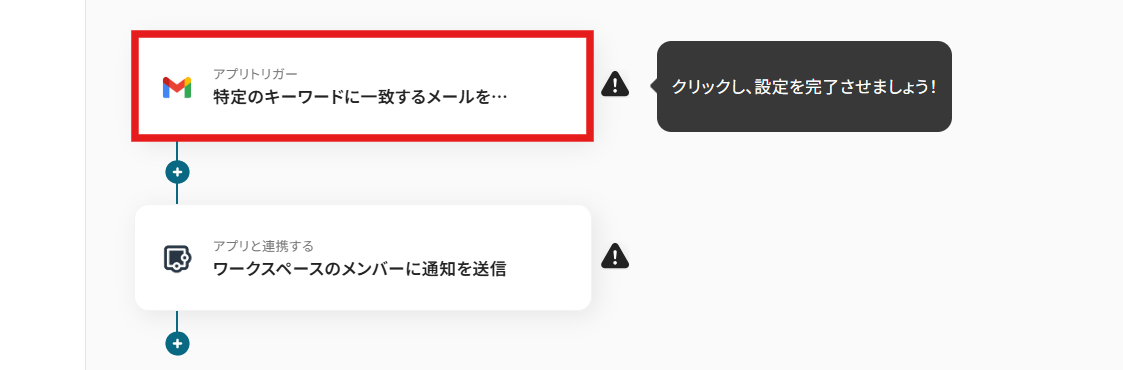 まず、一番上の「特定のキーワードに一致するメールを受信したら」のアイコンをクリックします。