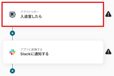 1.先ほどの画面で「OK」をクリックして、表示された画面のアプリトリガー「入退室したら」をクリックしてください。