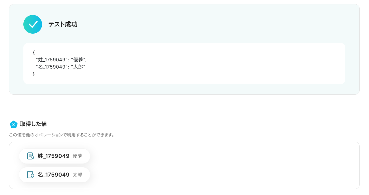 - Googleフォームをトリガーとして使用した際の回答内容を取得する方法は下記を参照ください。