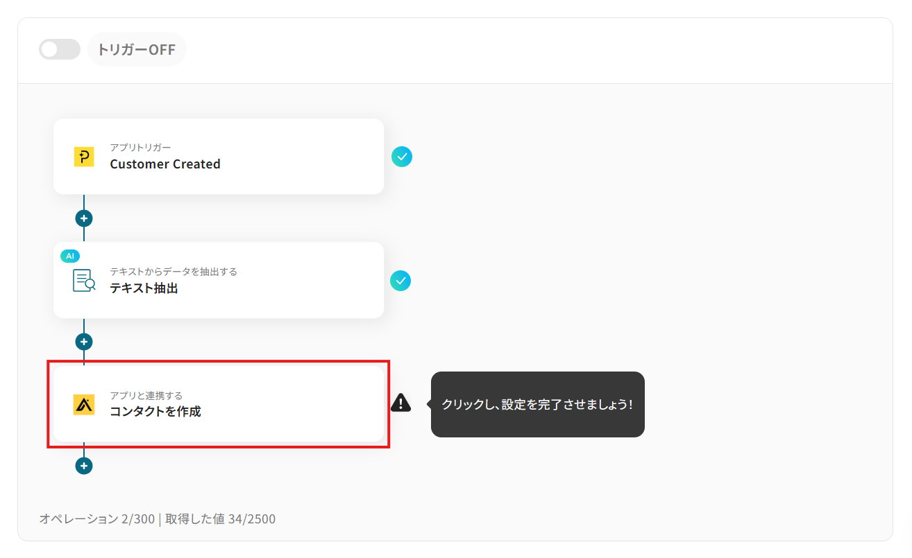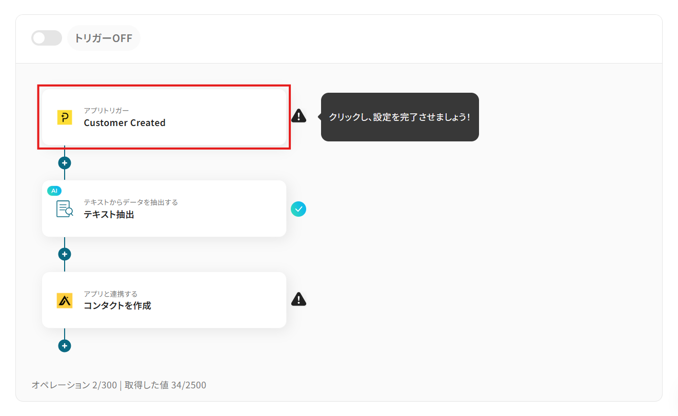 - Paddleのトリガー設定と各アクション(テキスト抽出、コンタクト作成)の設定