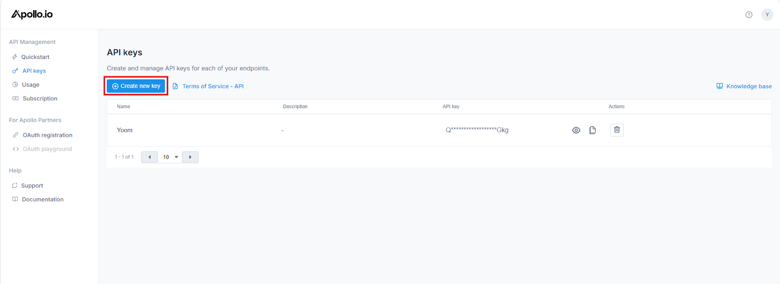 Apolloにログイン後、管理画面から「API keys」にアクセス。