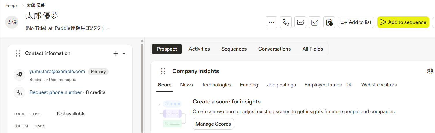 - Paddleで顧客情報が作成されると自動でApolloにコンタクトが作成されるため、データ入力の手間を省き、営業活動の初動を早めることができます。