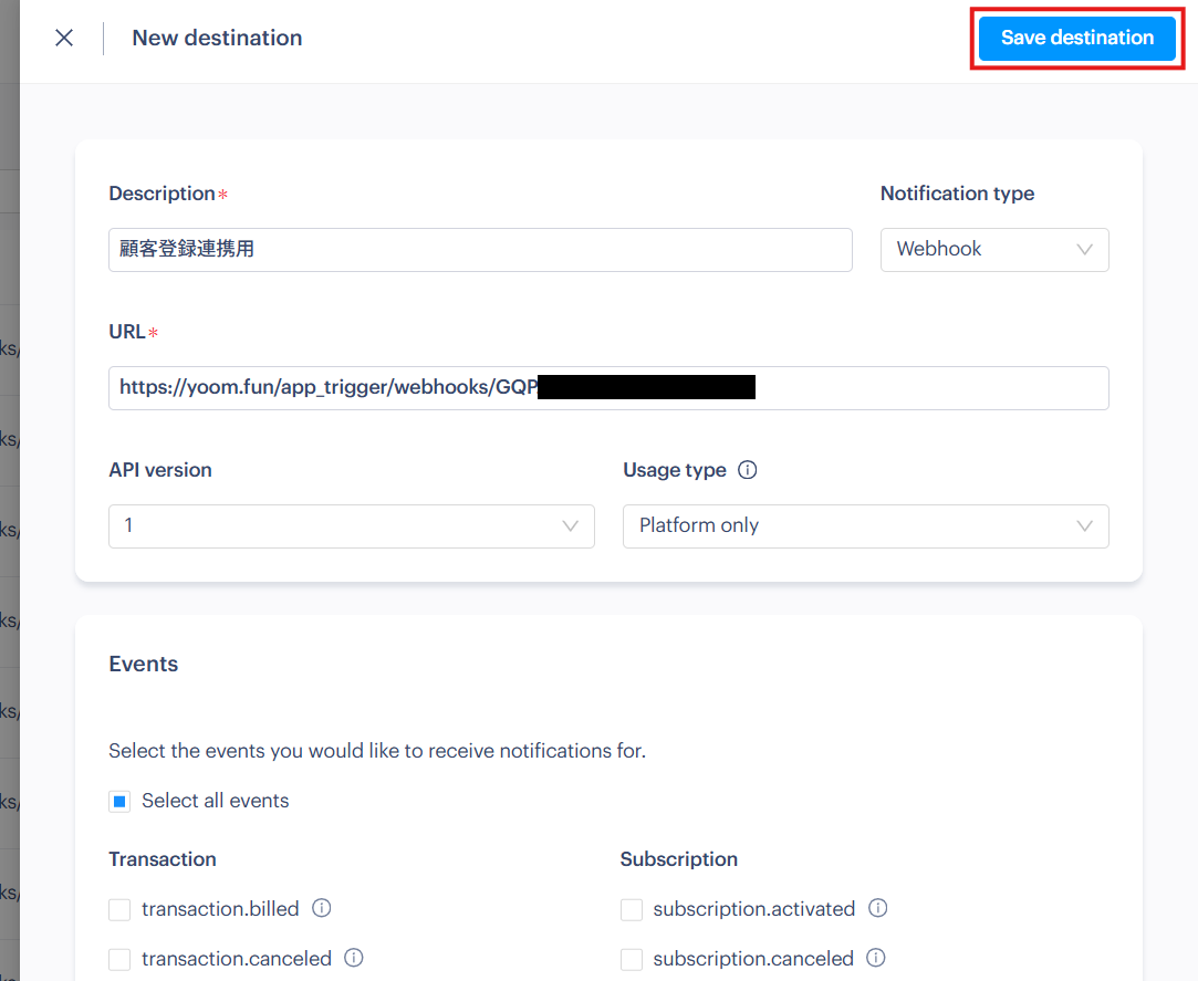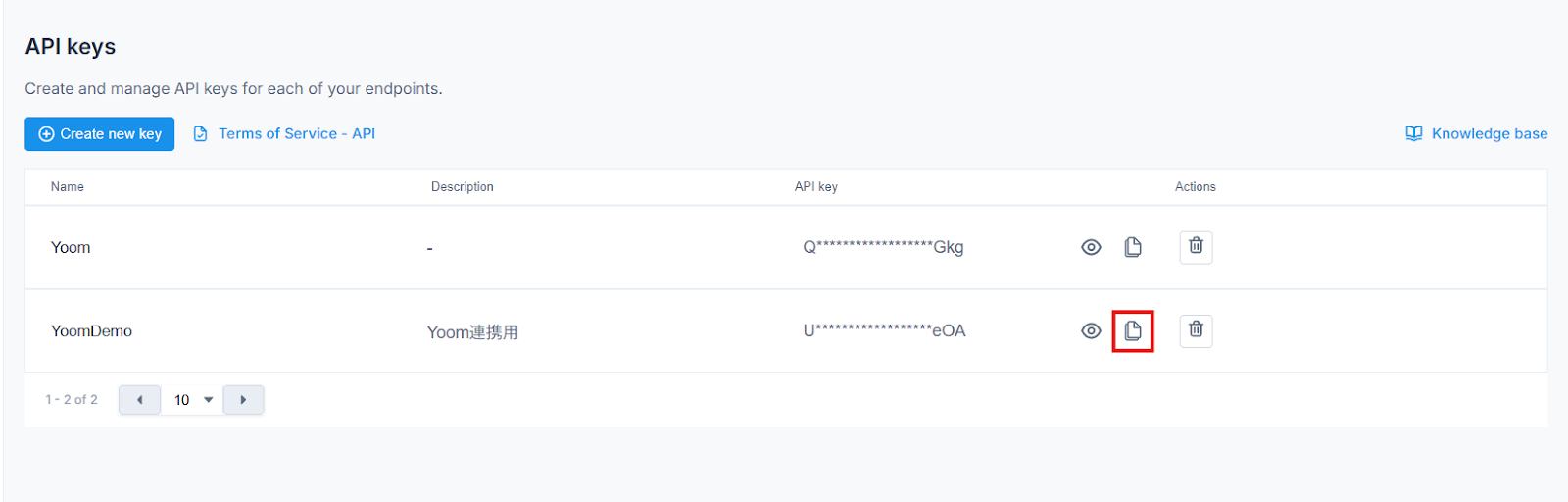 発行されたAPI keyをコピーしたら、Yoom連携画面の「アクセストークン」に設定してください。