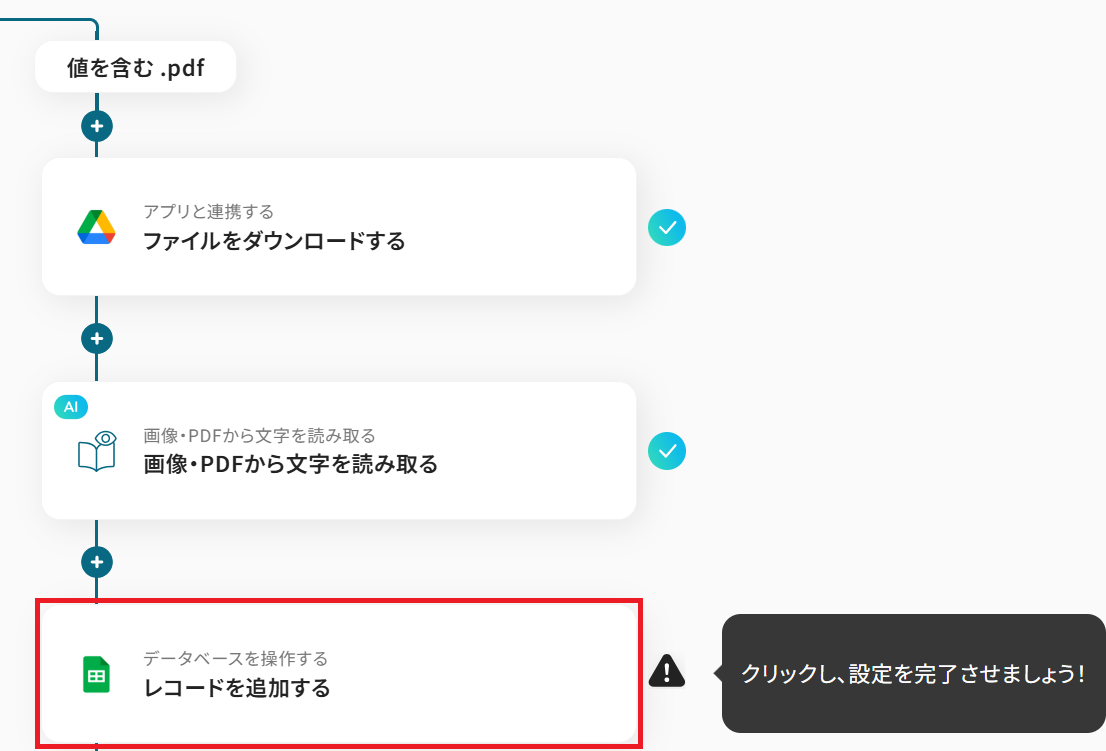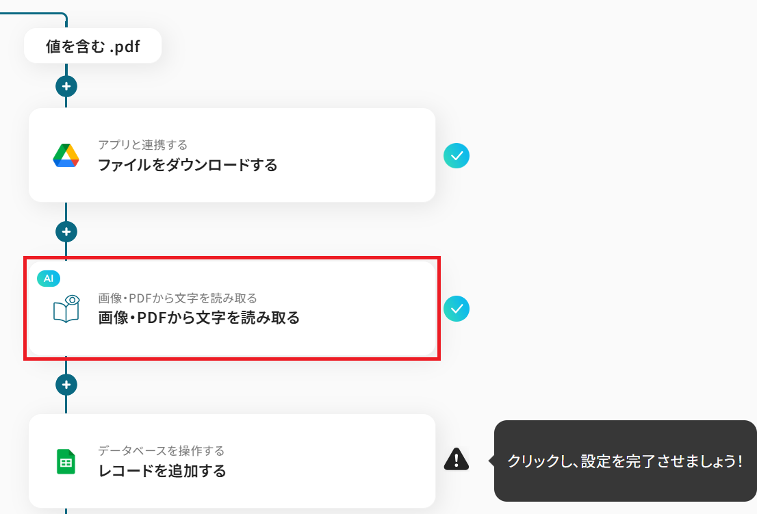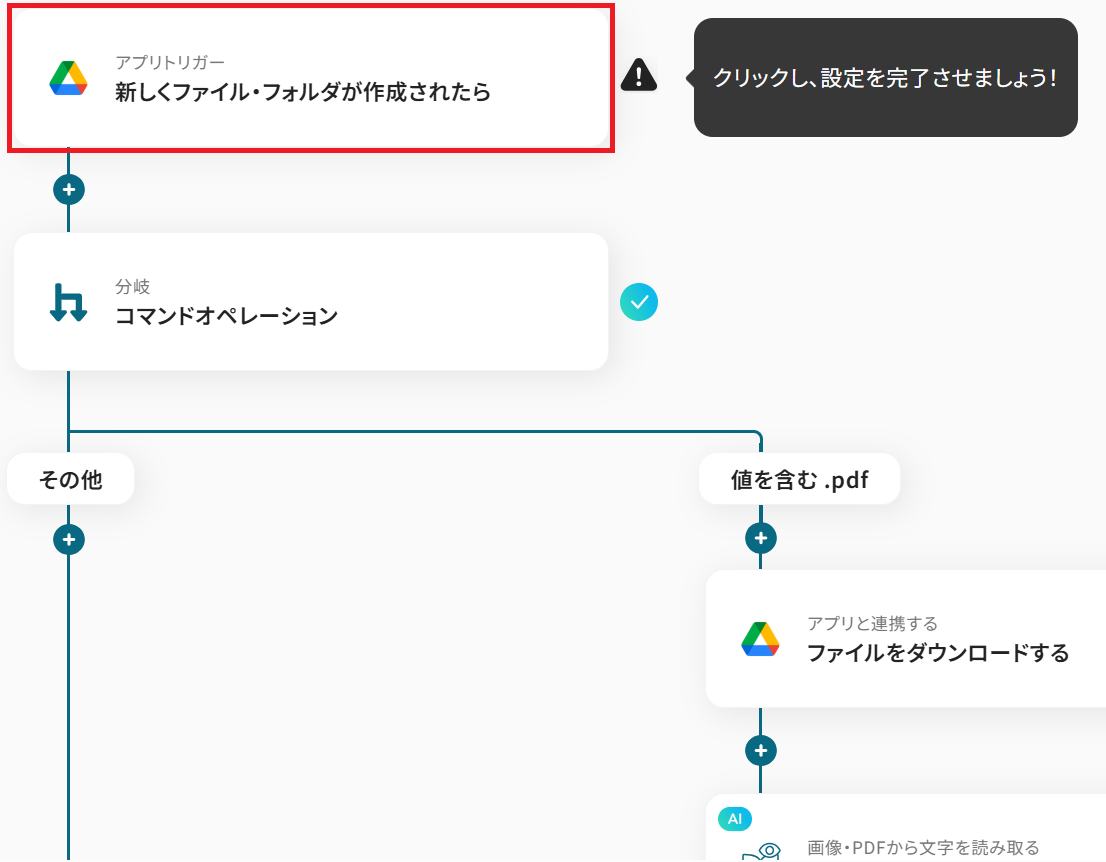 それではここから代表的な例として、Google DriveにアップロードされたPDFをOCRで全文読み取り、Google スプレッドシートに追加するフローを解説していきます!