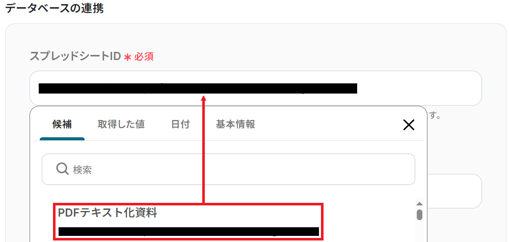 次に、先ほど用意したシートのスプレッドシートIDを候補から選択しましょう。