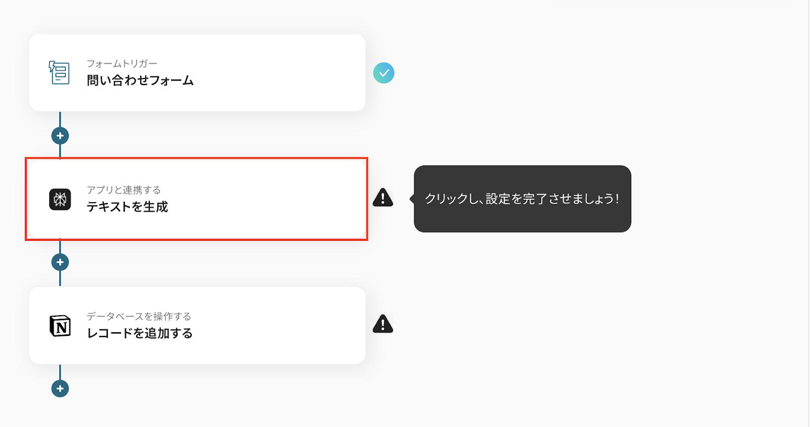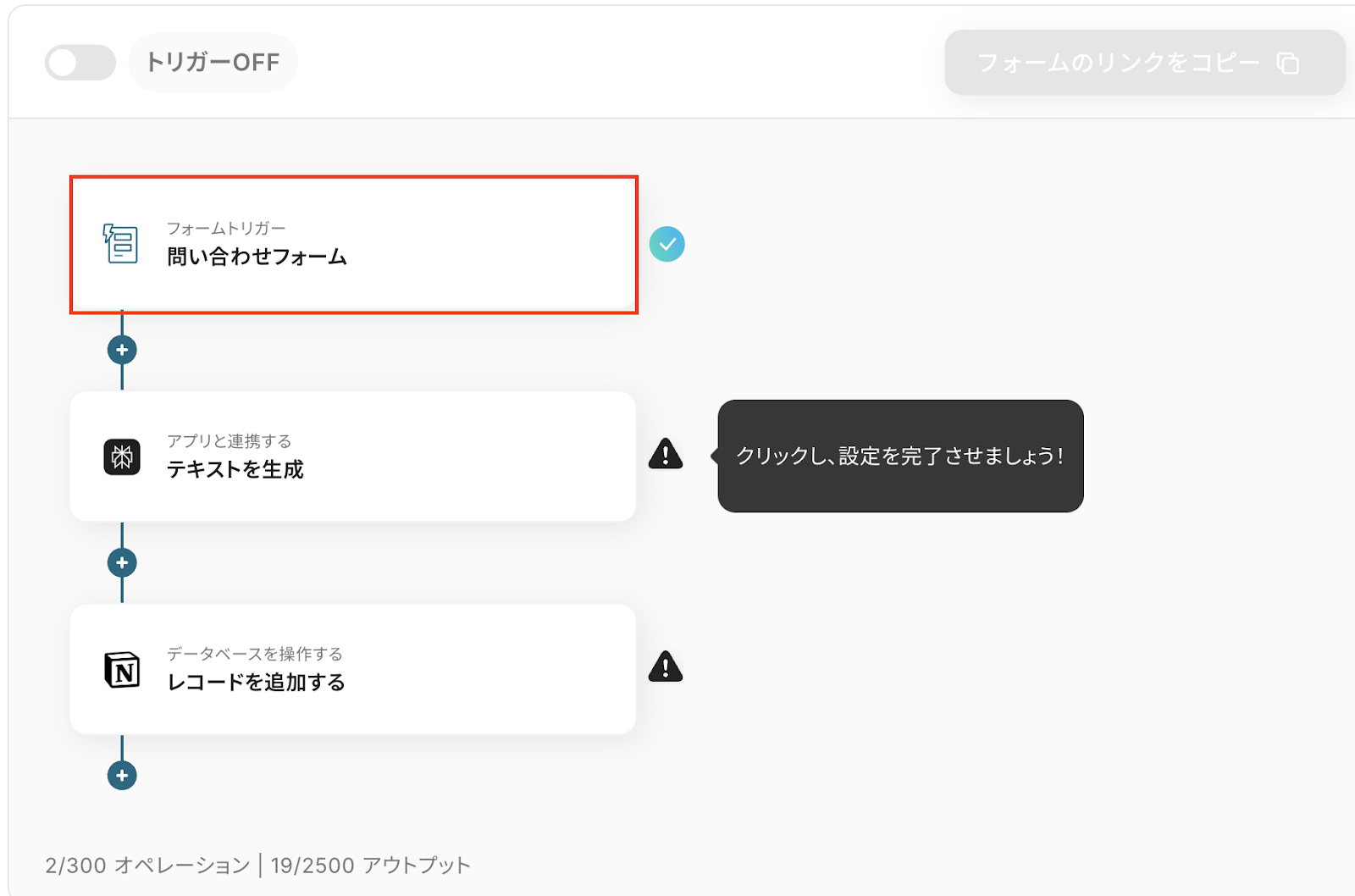 - フォームのトリガー設定PerplexityおよびNotionのアクション設定