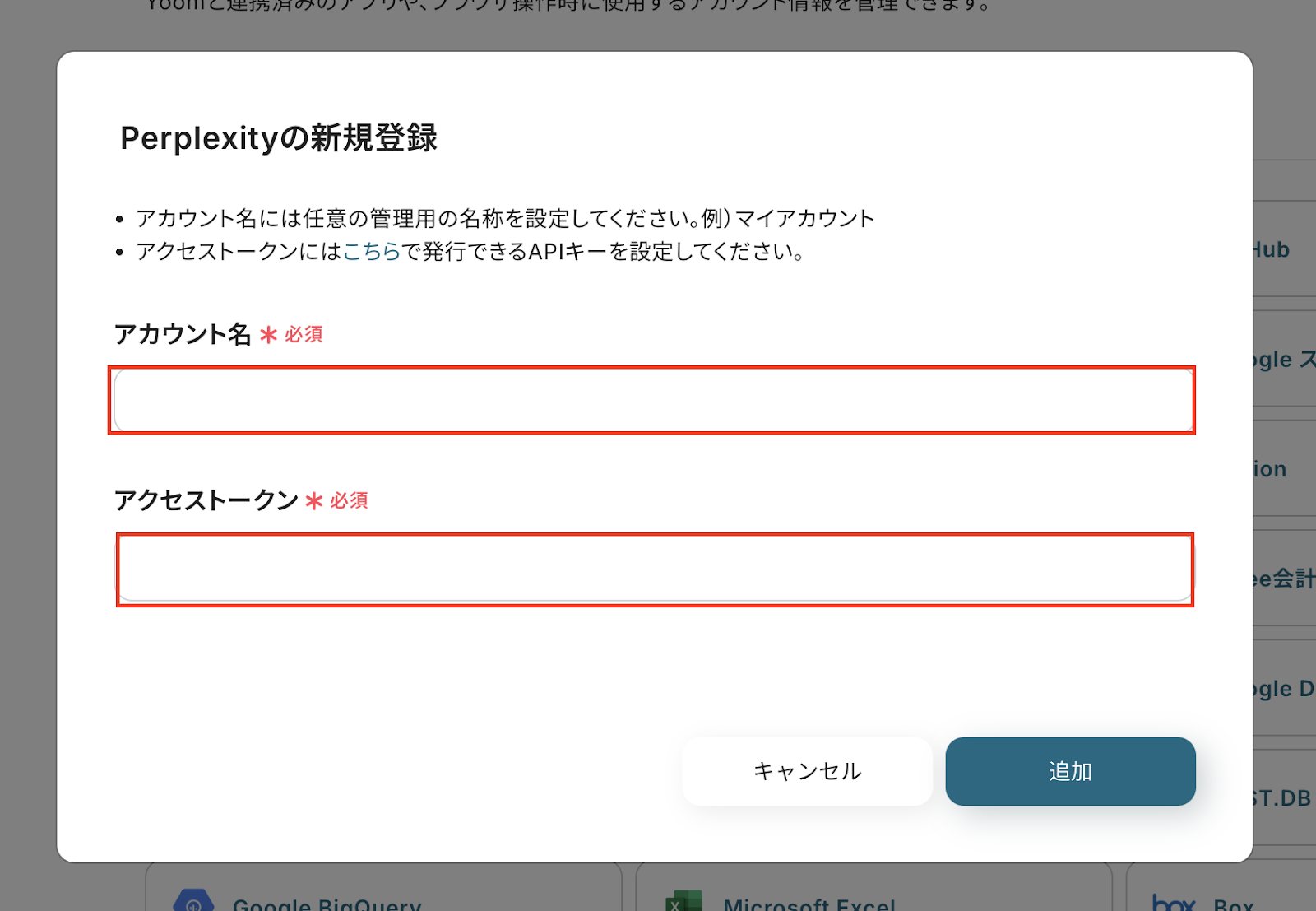 ・Google スプレッドシート、PerplexityのそれぞれとYoomを連携してください。