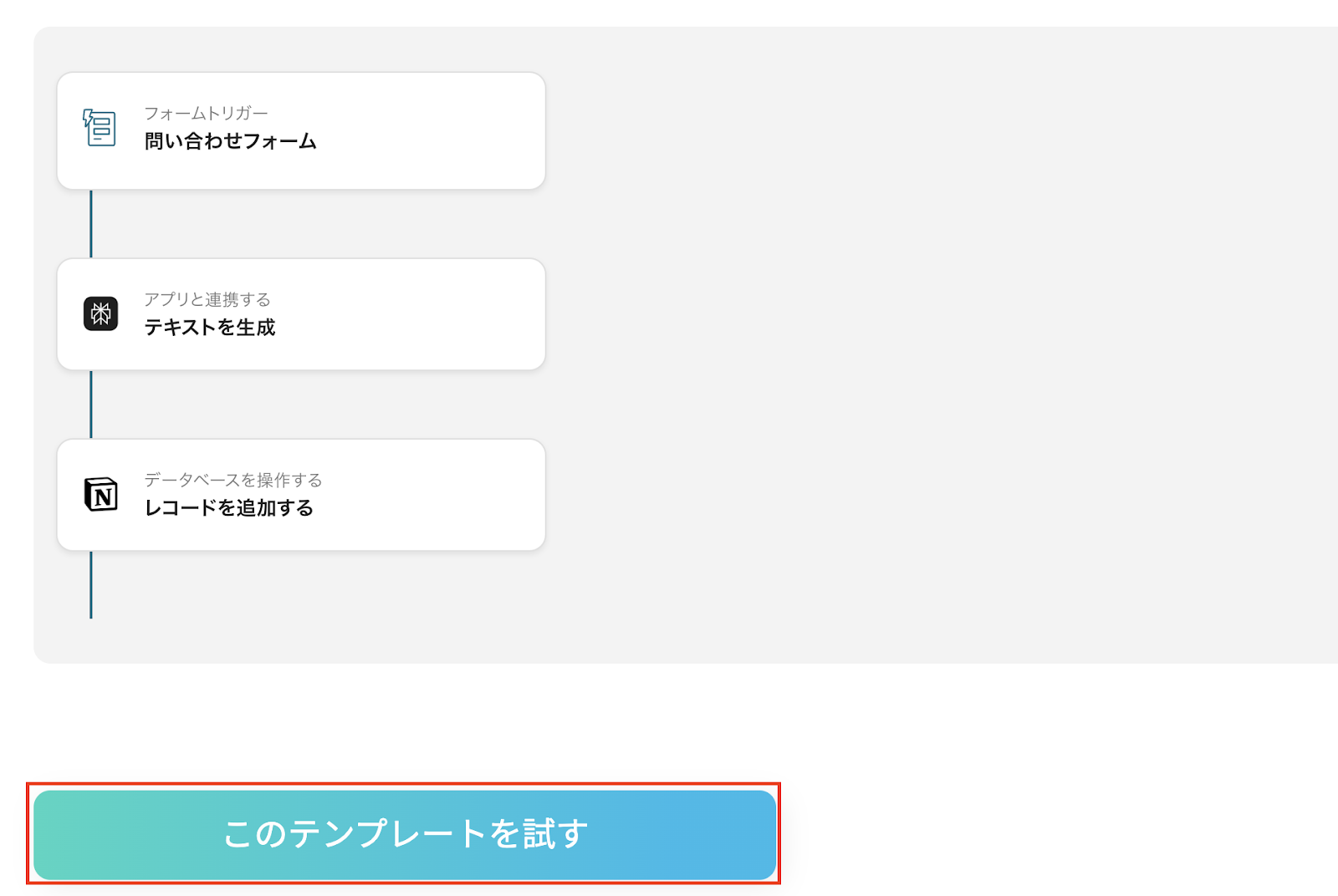「問い合わせフォームの内容をPerplexityで自動回答し、NotionにQ&A履歴を蓄積する」フローは、顧客からの問い合わせ対応を効率化する業務ワークフローです。