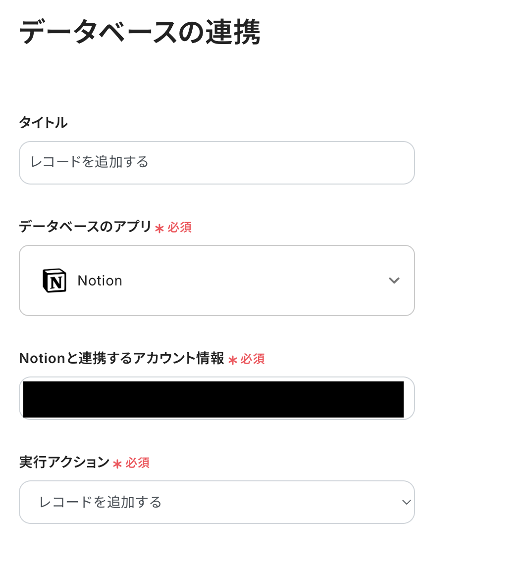 注:Notionのマイアプリ登録前に、使用したいデータベースを作成しておきましょう。