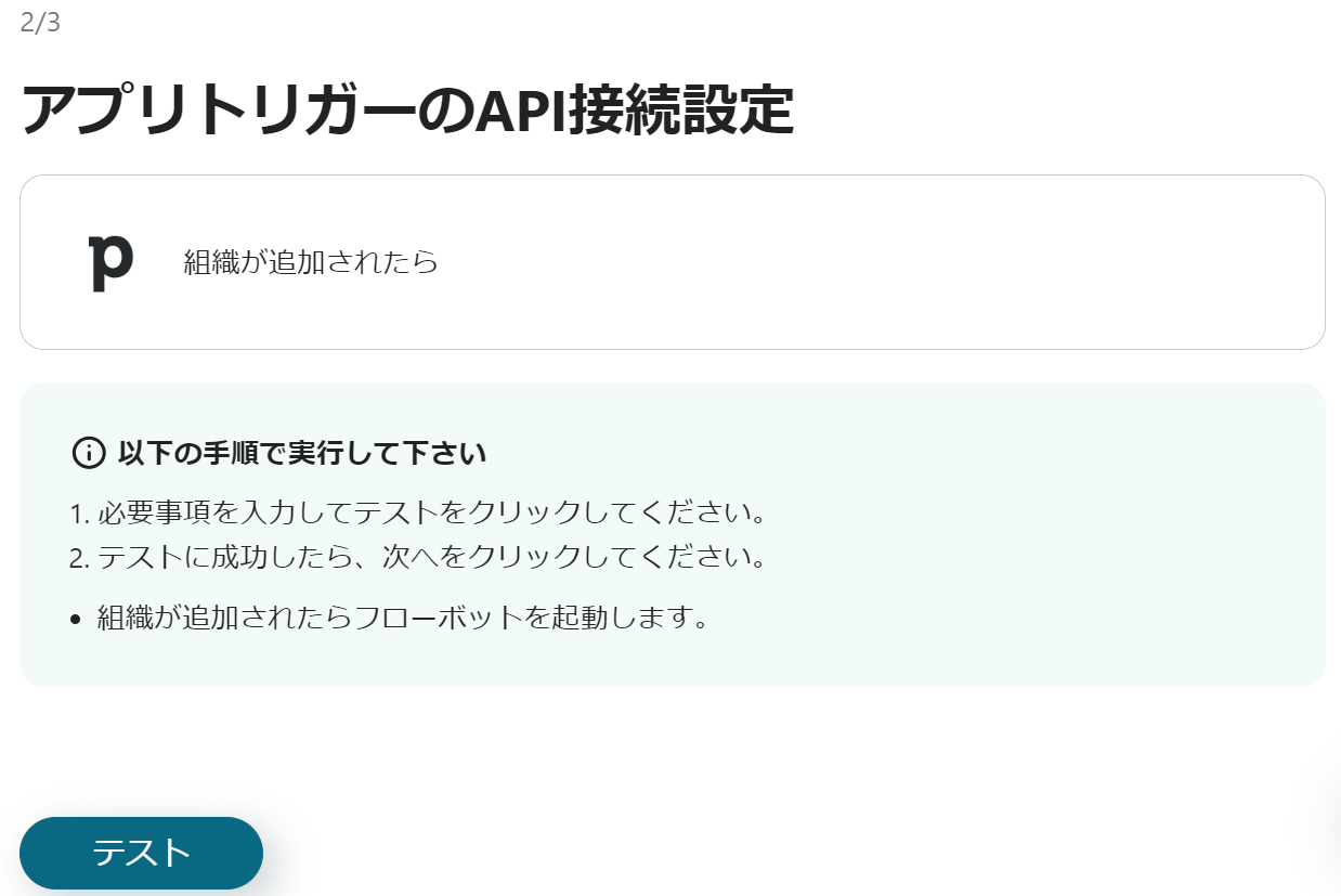 「テスト」→「テスト成功」→「保存」をクリックしましょう。