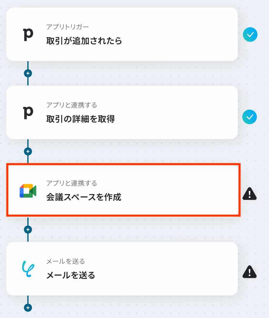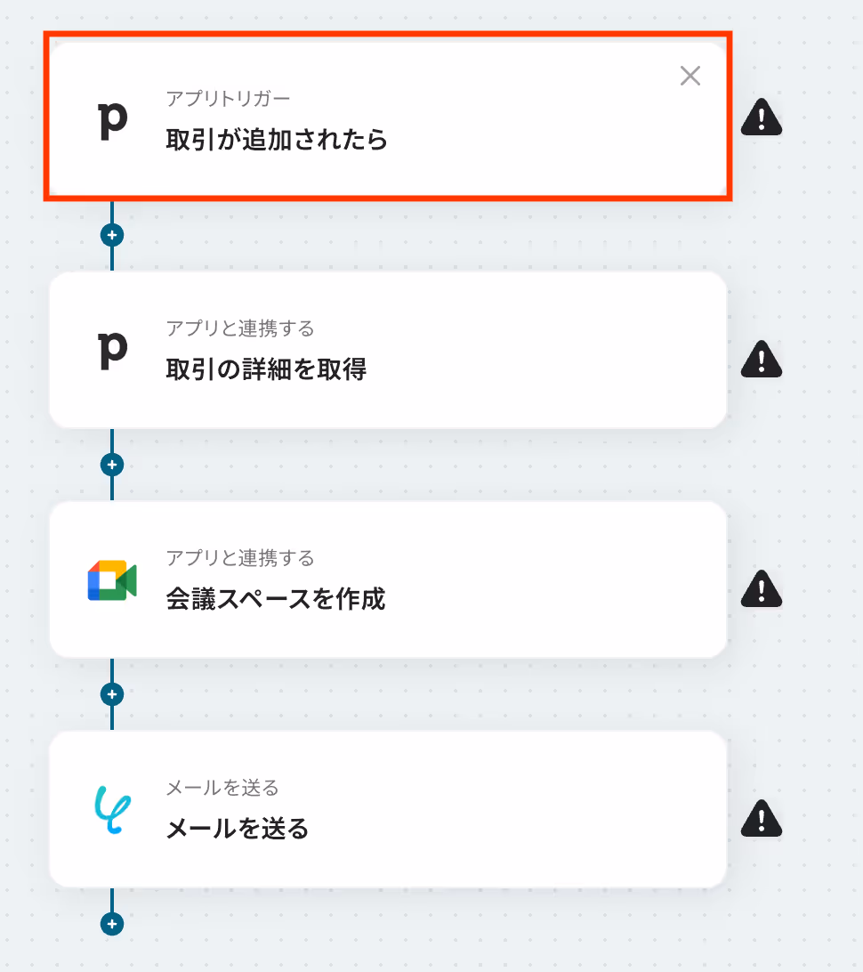 今回は「Pipedriveで取引が作成されたら、Google Meetで会議スペースを作成しメールで共有する」フローを作成していきます!