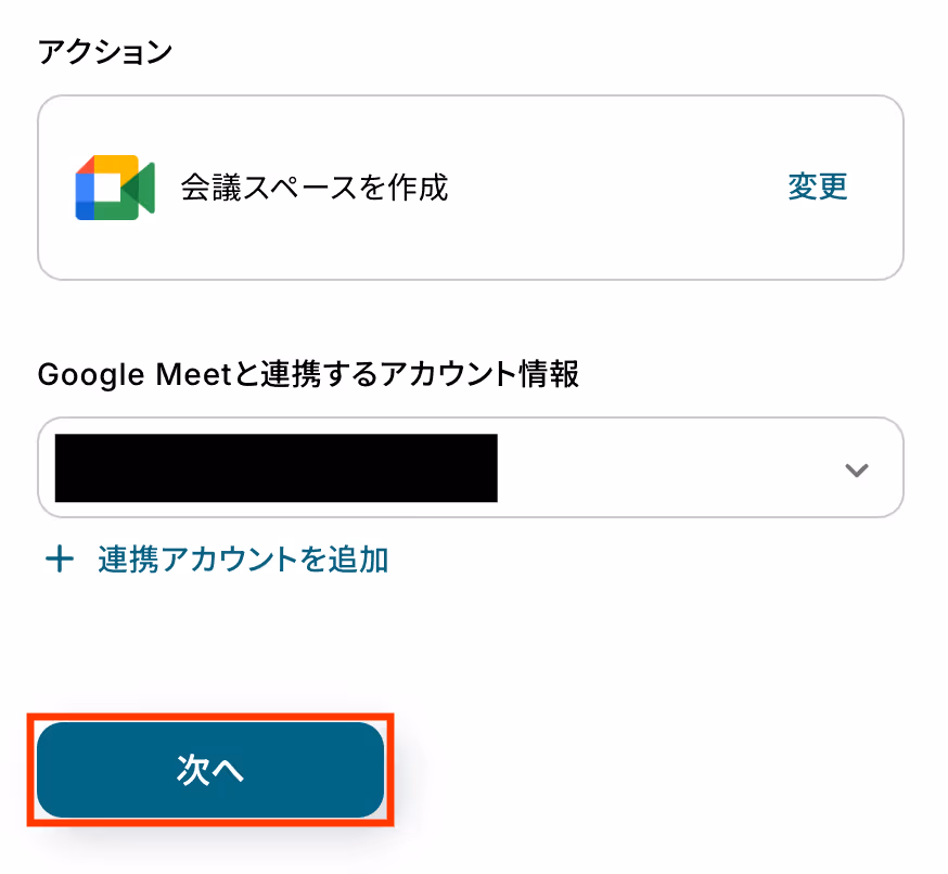 アクションは、「会議スペースを作成」のままで次に進みましょう!