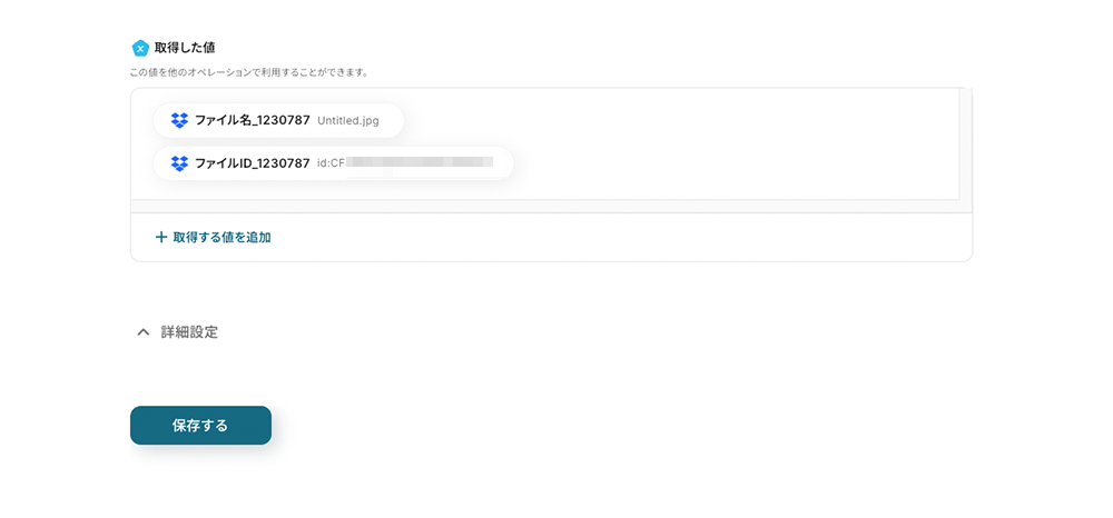 ファイルが取得できたことを確認したら、保存するをクリックして次に進みます。