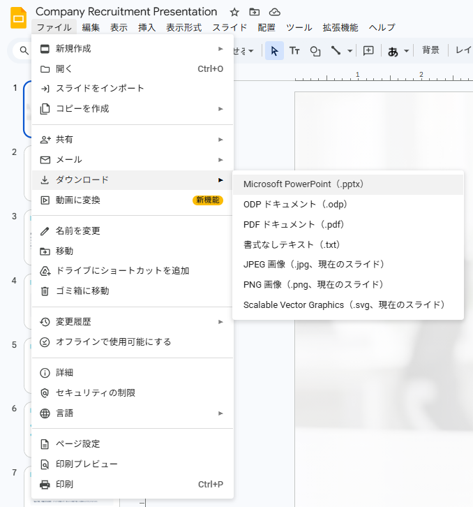Microsoft PowerPoint形式で出力すれば、ローカル環境でPowerPoint資料として編集を行うことも可能です。作業のしやすい形式で、スライドを完成させましょう。