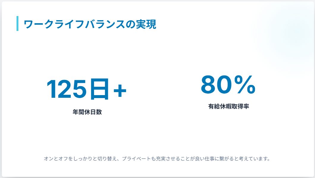 ・有給休暇取得率:80%以上