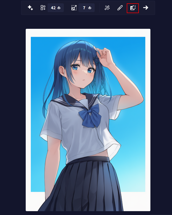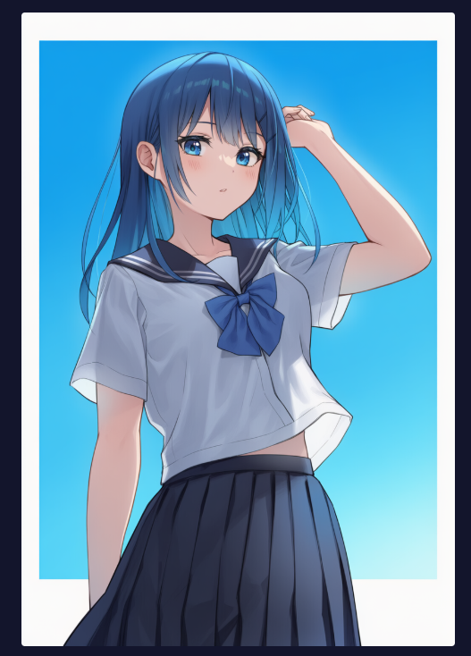 指示通り、青い髪型で制服を着た少女が生成できました。