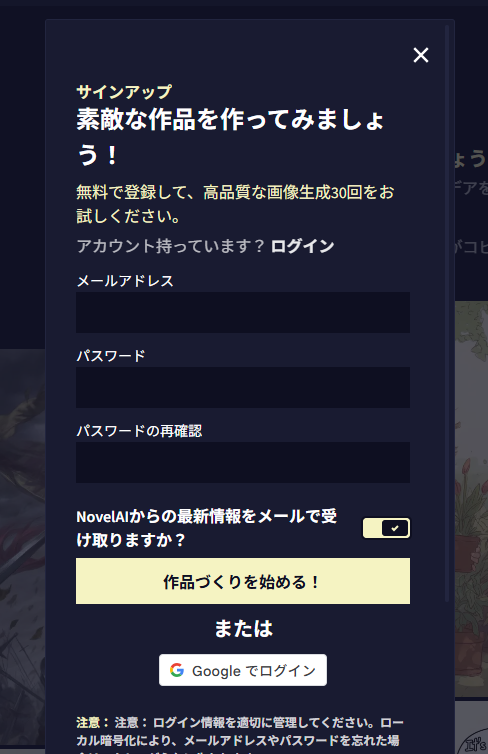 NovelAIの始め方、アカウント登録方法について解説します。