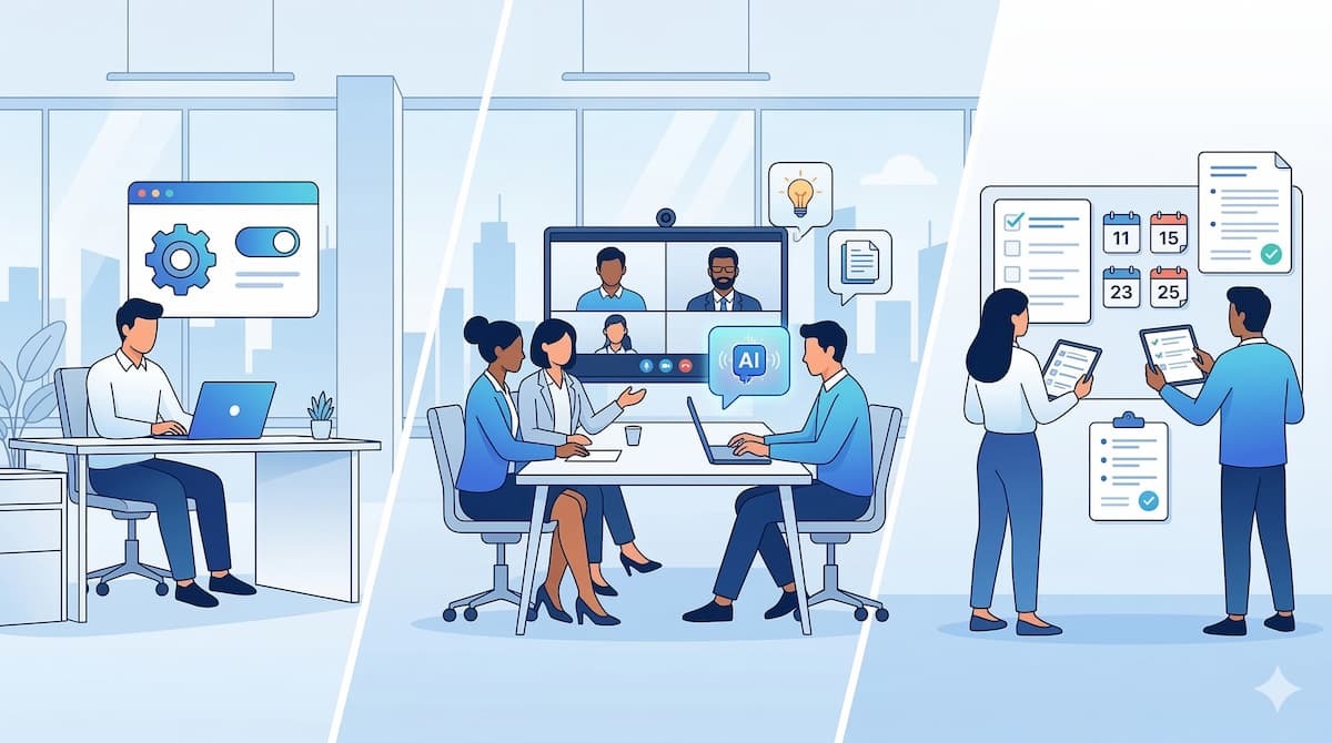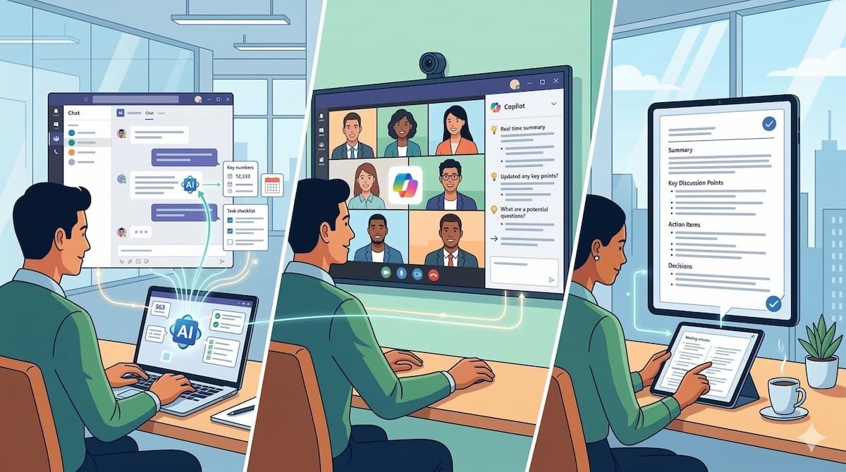 実際にCopilot in Teamsを活用するための手順は非常にシンプルです。 ここでは、事前準備から会議中のプロンプト入力、そして会議終了後の振り返りまで、具体的な使い方を3つのステップで解説します。