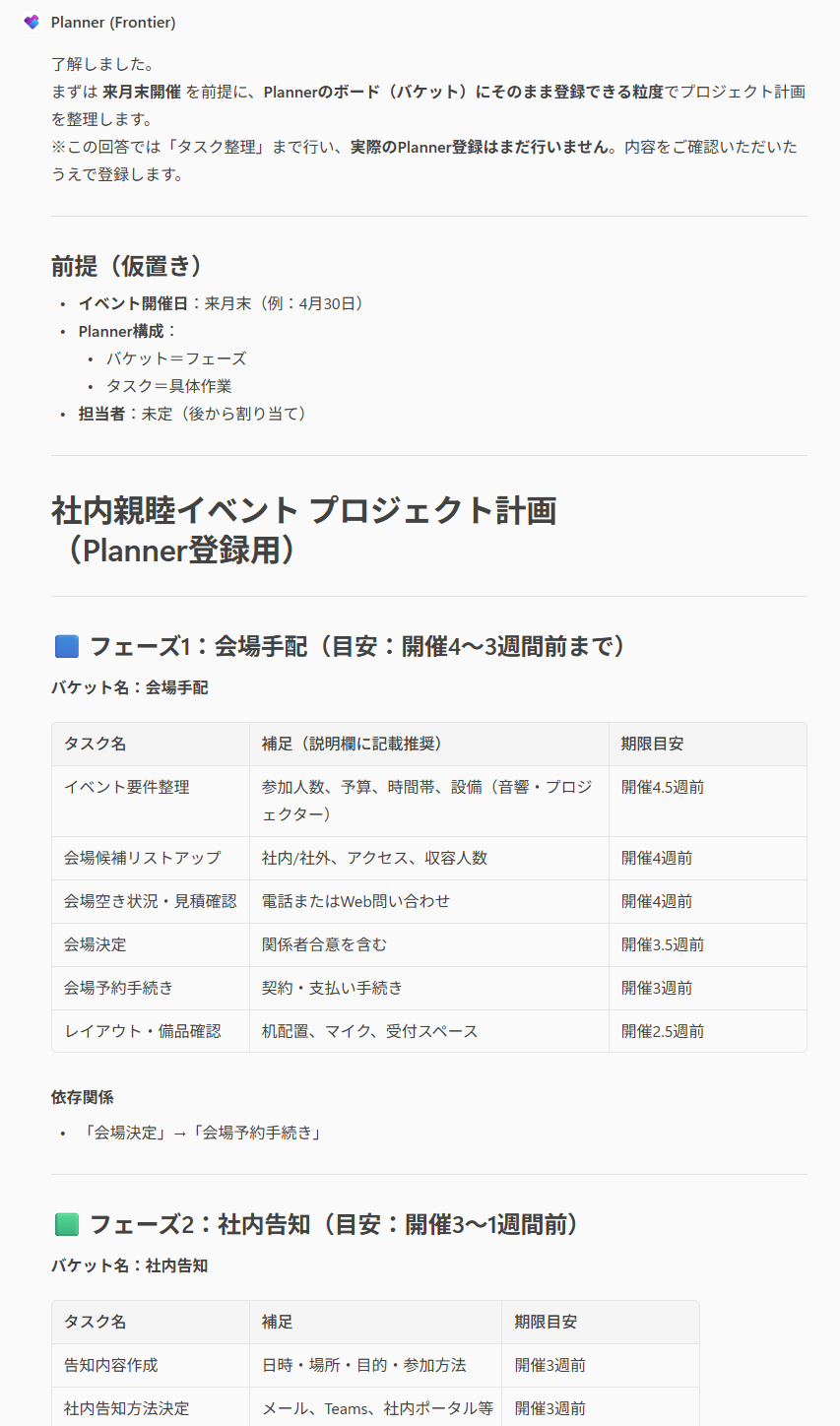 📅Plannerエージェントの活用によるプロジェクト管理の効率化