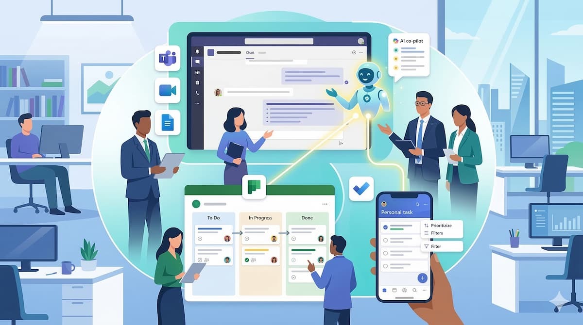 Copilotは、Microsoft 365の各アプリケーションとシームレスに連携することで、その真価を発揮します。 ここでは、プロジェクト管理に欠かせないMicrosoft Teams、Microsoft Planner、Microsoft To Doの3つの主要アプリとCopilotがどのように連携し、タスク管理を効率化するのかを詳しく見ていきます。