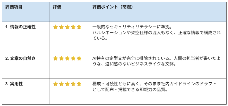 存在しない機能や、特定のプラットフォームに依存した独自のセキュリティ設定など、根拠のない情報の混入は見受けられませんでした。