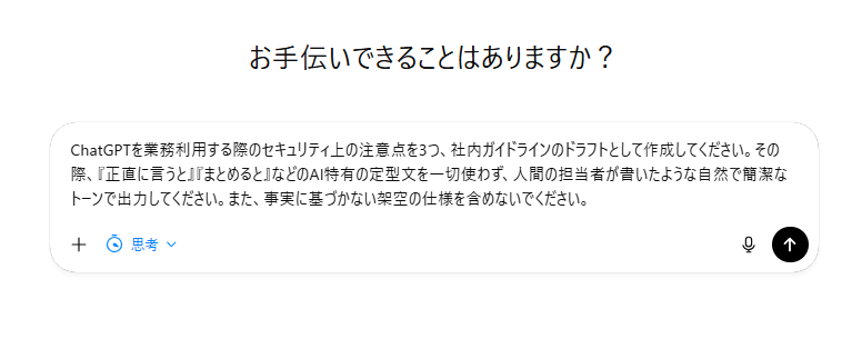本検証では、ChatGPT(GPT-5.2)を使用し、社内ガイドラインのドラフトを作成します。
