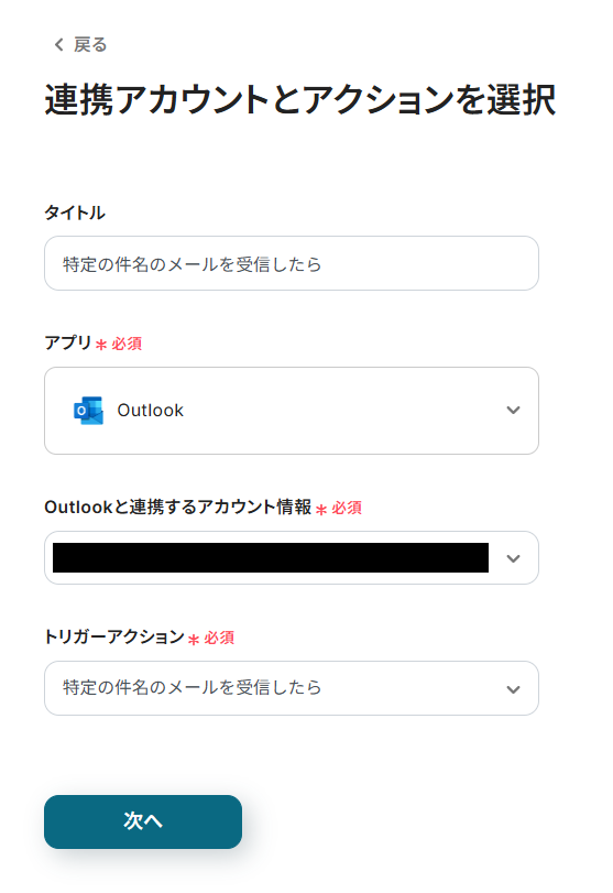 - Outlookのトリガー設定、データの抽出設定およびRaindrop.ioのアクション設定