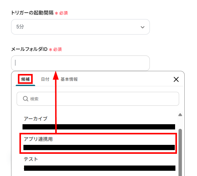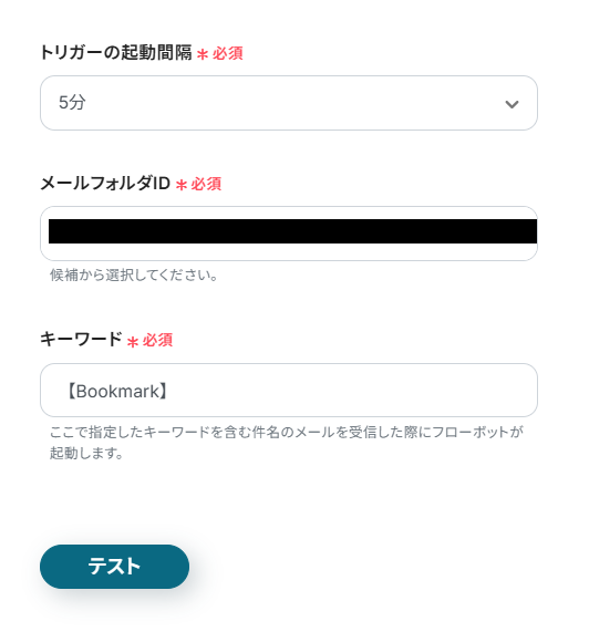 指定したフォルダでメールを受信したら、Yoomに戻りテストを行います。