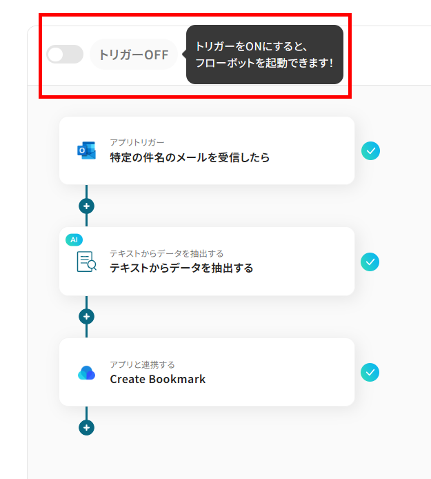 あとでトリガーをONにする場合は、フローボットの一覧画面から設定できます。