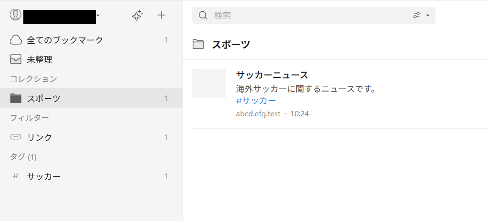 テストが成功すると、Raindrop.ioにブックマークが作成されるので確認してください。