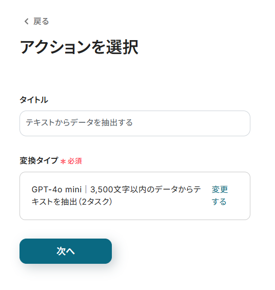 指示内容は、項目を抽出するためのプロンプトを任意で設定してください。ここでは以下のように設定しました。