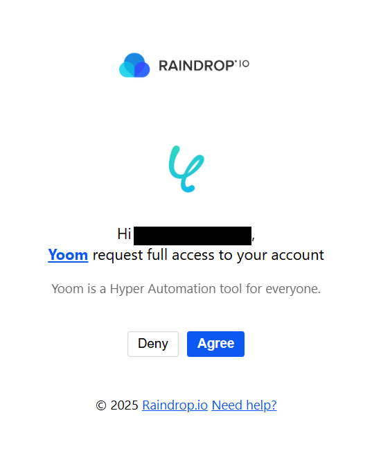 AgreeをクリックしてYoomからRaindrop.ioへのアクセスを許可すれば連携完了です。