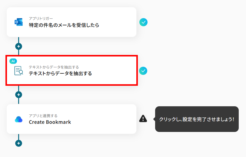 次に、受信したメールの内容から、Raindrop.ioに登録する情報を抽出する設定を行います。