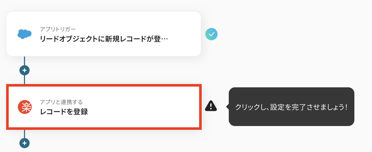 楽楽販売 APIのレコード登録アクションをフローの中に置くことで、SalesforceなどのCRMツールで新しいリードや商談情報が追加された際に、その情報を楽楽販売へ自動で登録可能です。