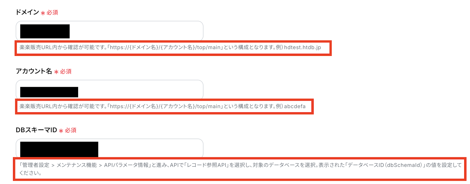 それぞれの項目の入力欄の下にある注釈を確認しながら設定してください。