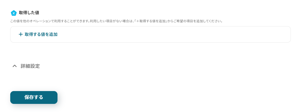 値の追加が済んだら保存しましょう。 取得した値は、以降の設定で利用できます。