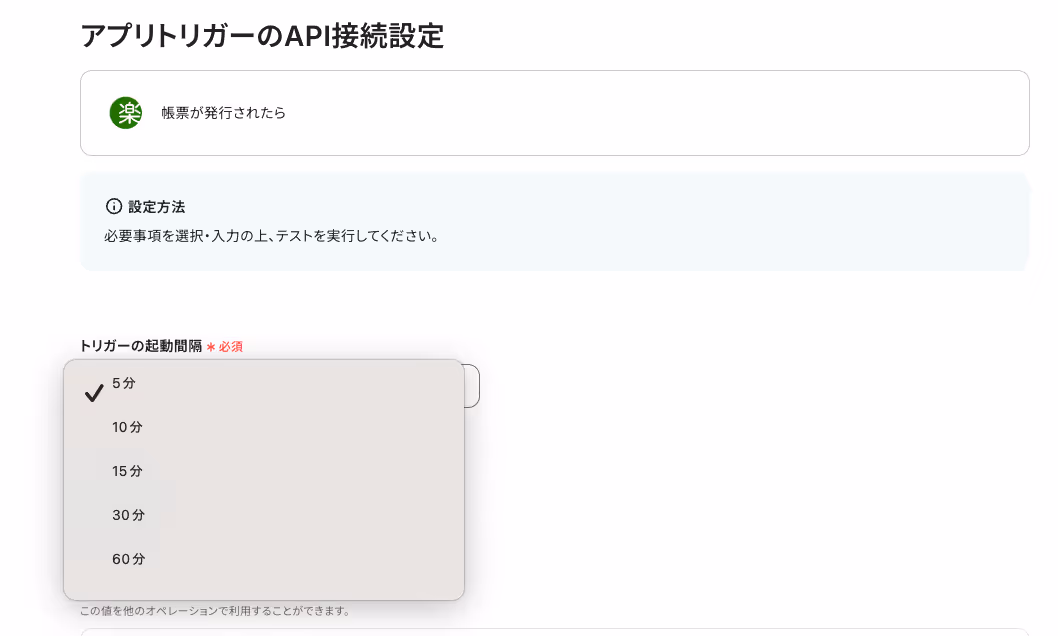 ※トリガーの起動タイミングは、5分、10分、15分、30分、60分のいずれかで設定できます。