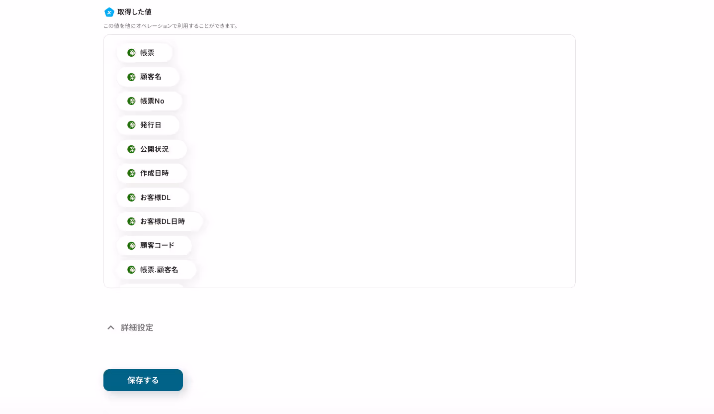 これで、【楽楽明細で帳票が発行されたら帳票情報をMicrosoft Excelのデータベースに追加する】というフローが完成しました。