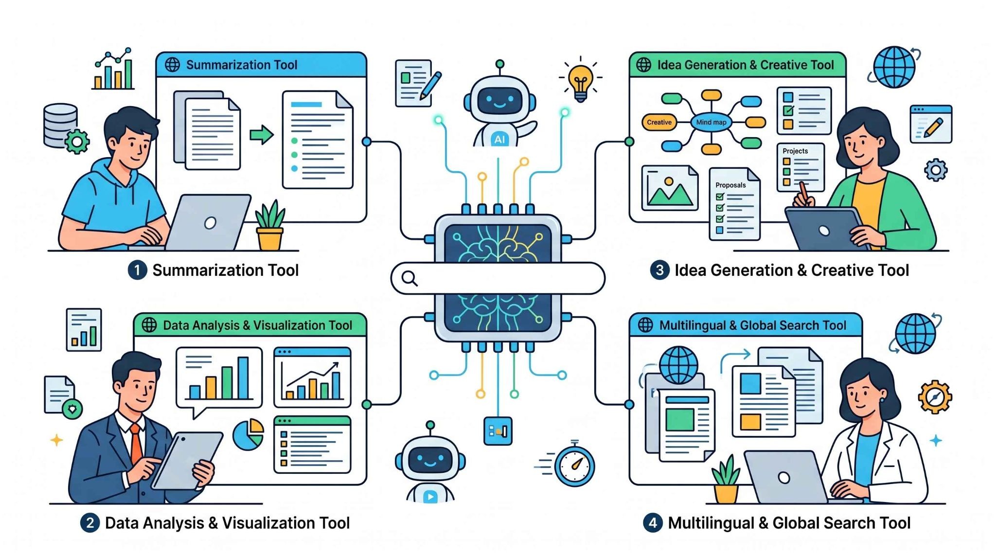 収集した情報を統合し、ユーザーにとって分かりやすい形に要約したうえで、一つの回答として出力してくれるのが最大の特徴です。