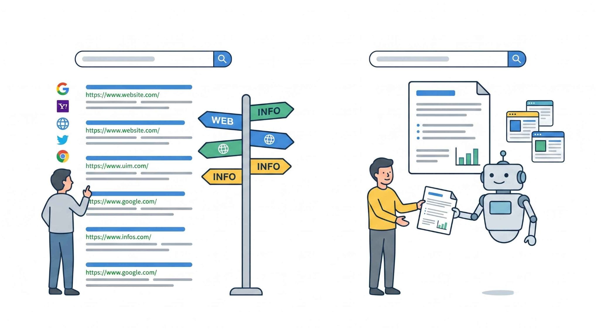 従来の検索では、ユーザー自身が検索結果のリンクを一つずつクリックし、ページ内の文章を読んで情報を探し出す必要がありました。