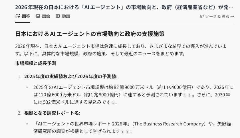 要点の整理は見やすかった一方で、出典の厳密な確認のしやすさではPerplexityと差が見られました。